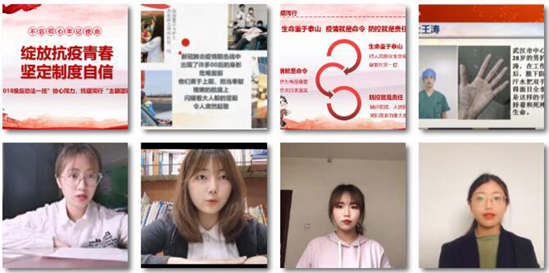 为展现新一代年轻人勇于拼搏、积极进取的精神风貌,尽情释放青春活力,反恐怖主义法学院团委组织学生开展线上线下系列文艺活动。2017级木卡地色·木太力普朗诵的《青春赞歌》、2018级拜合提努尔朗诵的《五四礼赞》、左先致同学朗诵的《永远的五四》等作品,饱含真挚感情;2017级孔佳豪演唱的《我的未来不是梦》、2017级覃丽雯演唱的《最初的梦想》、2018级陈胜华演唱的《在灿烂的阳光下》、2019级李昕源演唱的《光荣的中国共青团》等歌曲及古筝演奏,以悠扬的歌声和琴声打动人心。各民族同学充分发挥文艺特长,将民族特色文化与传承五四精神有机结合,传递了各民族精神风貌,传达了强烈的民族团结精神和爱国情怀。