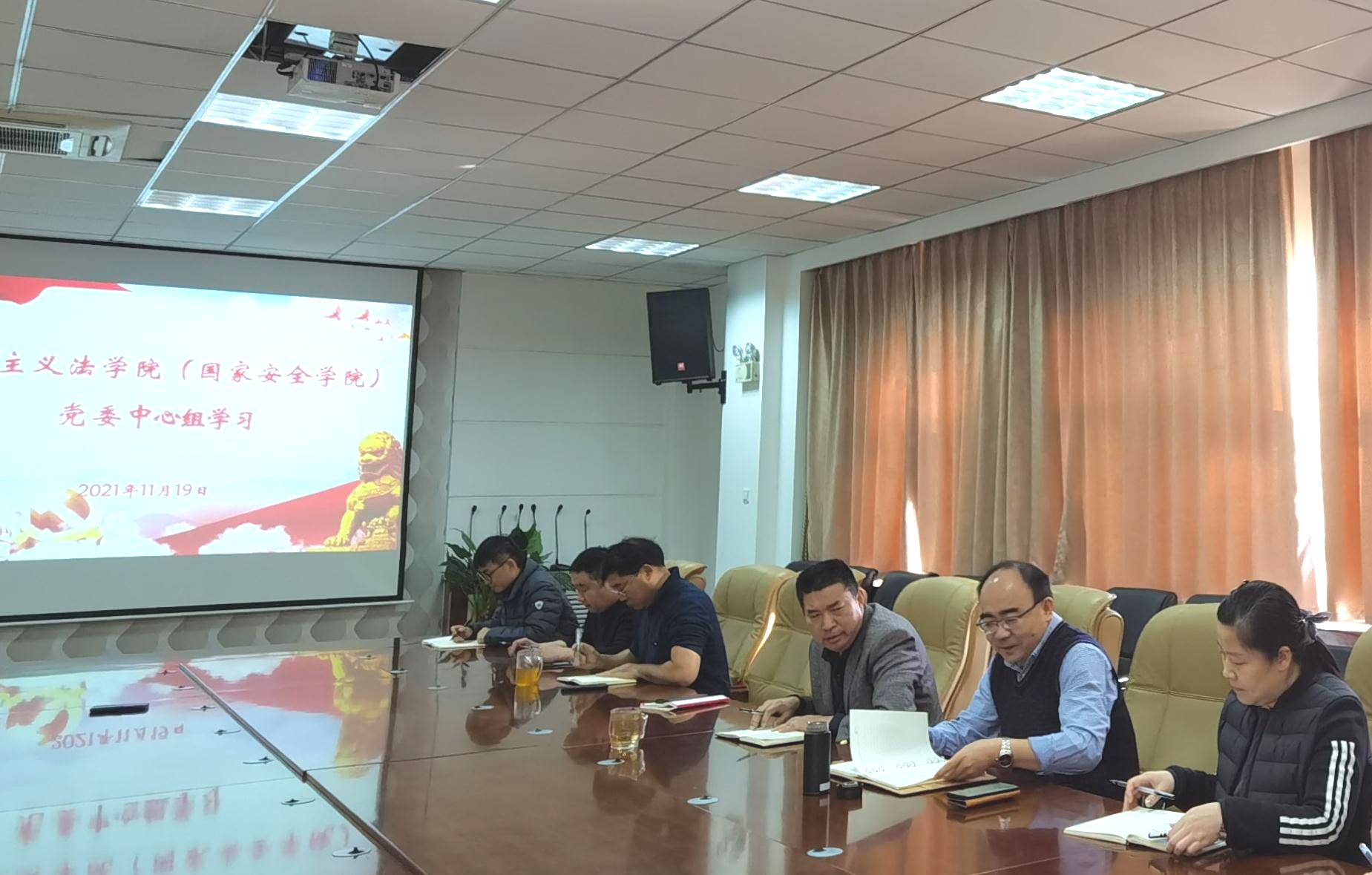 )党委在学院会议室召开中心组(扩大)学习会议,专题学习党的十九届六中全会精神。学院领导班子成员、党支部书记、行政教辅人员参加会议。会议由学院党委书记李政敏主持。