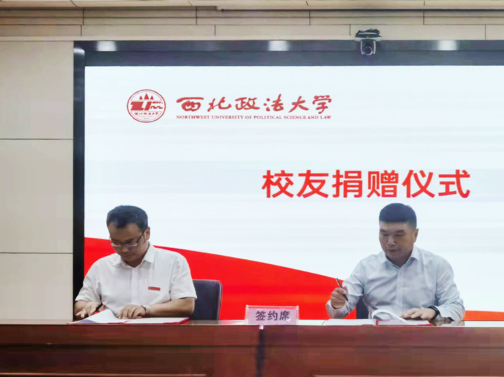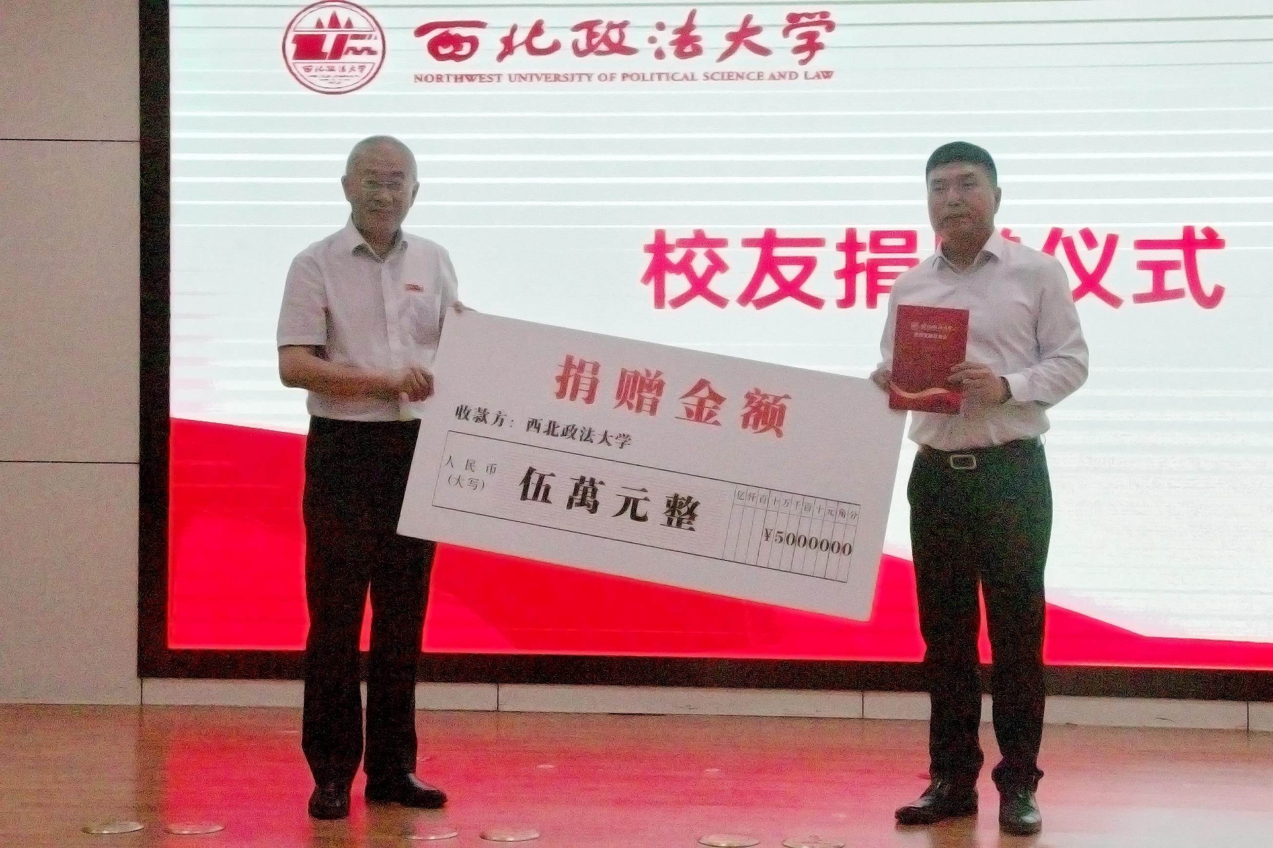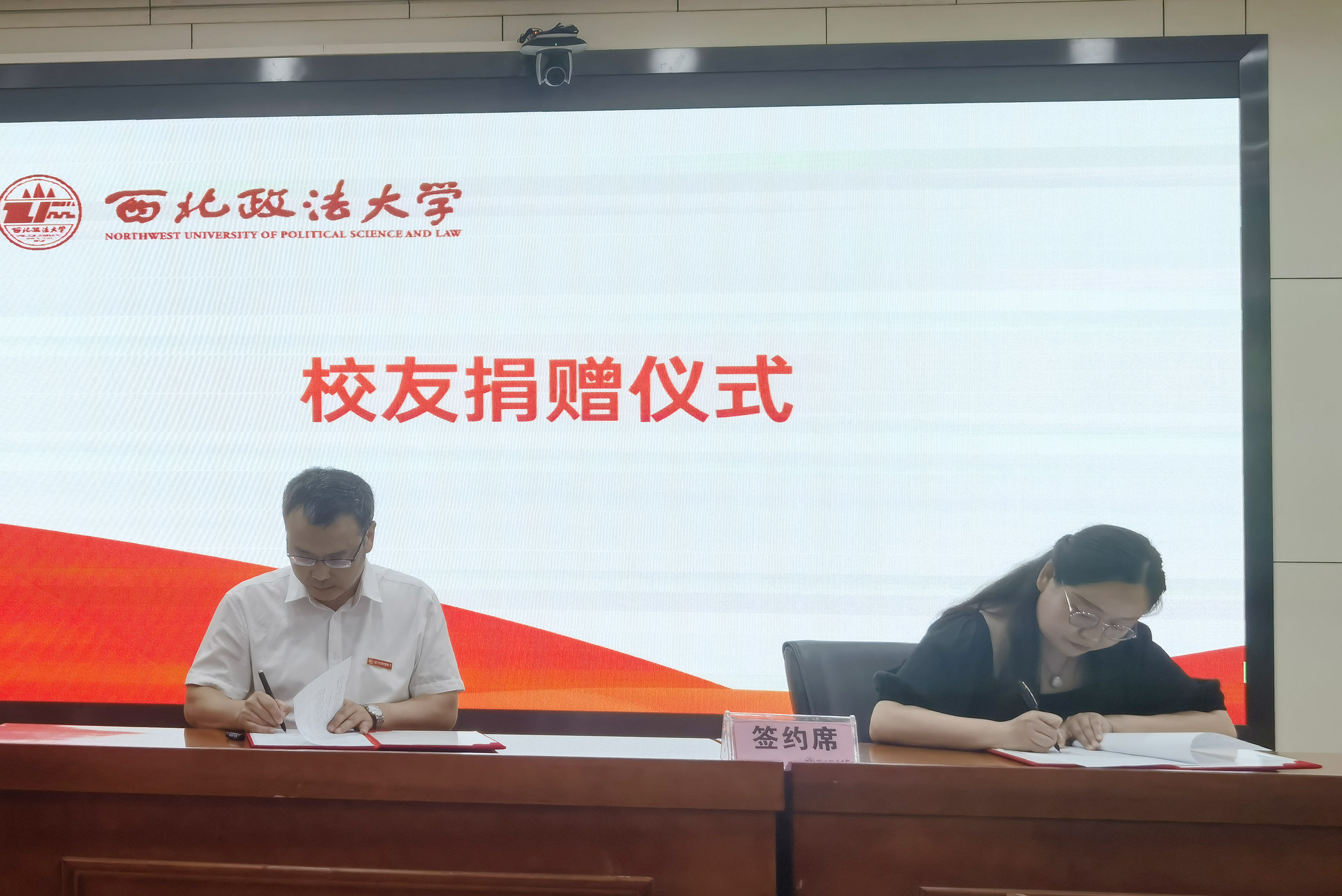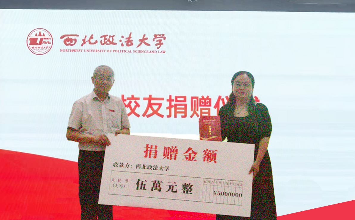 西北政法大学教育发展基金会副理事长赵全宇代表学校与广西怡亚通大泽深度供应链管理有限公司董事长聂峰辉、陕西矩阵实业有限公司董事长魏银银签订捐赠协议,王健副校长为两位校友颁发捐赠证书。校友代表魏银银女士在发言中向母校汇报了个人发展所取得的成绩,同时希望今后能继续为母校发展和社会进步作出更大的贡献。