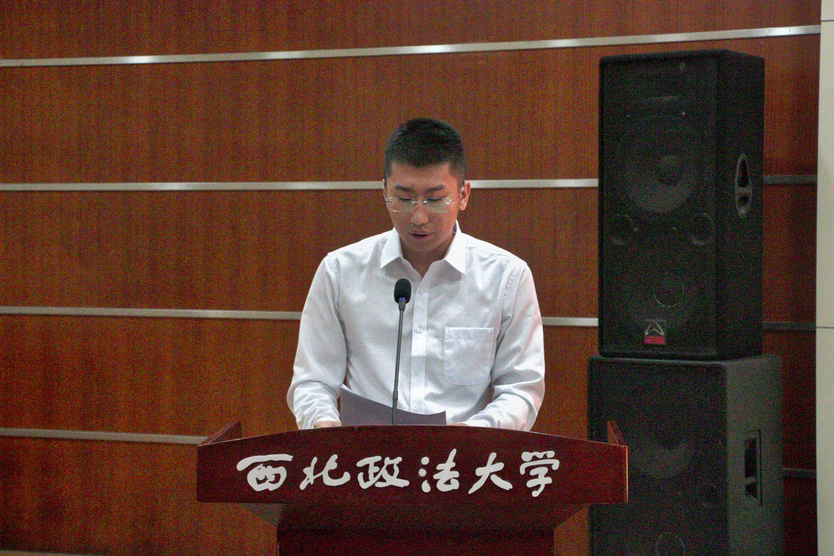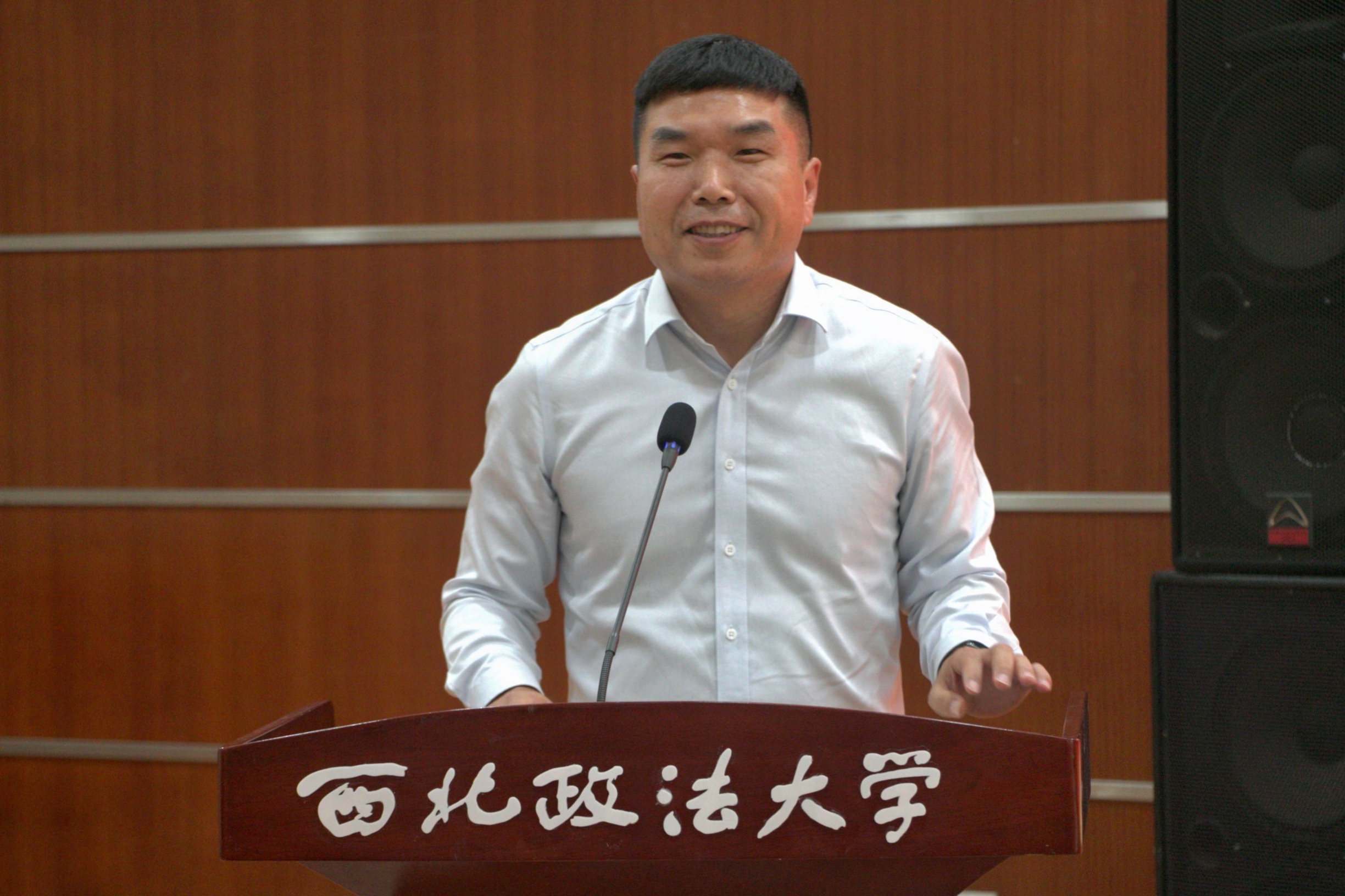 王健副校长在致辞中表达了对于我校校友、广西怡亚通大泽深度供应链管理有限公司董事长聂峰辉先生,我校校友、陕西矩阵实业有限公司董事长魏银银女士的欢迎。西北政法大学办学85年来,培养了许多像聂峰辉先生、魏银银女士一样的杰出校友,他们在各自岗位上发光发热,对于他们回馈母校、心系母校的情怀表示感谢。他寄语红缨奖学金和长安反恐奖学金获得者,希望他们遵照奖学金设立人的本意,努力学习,增长才干,向两位杰出校友学习,争做国家的栋梁之才,回馈母校、回报社会。