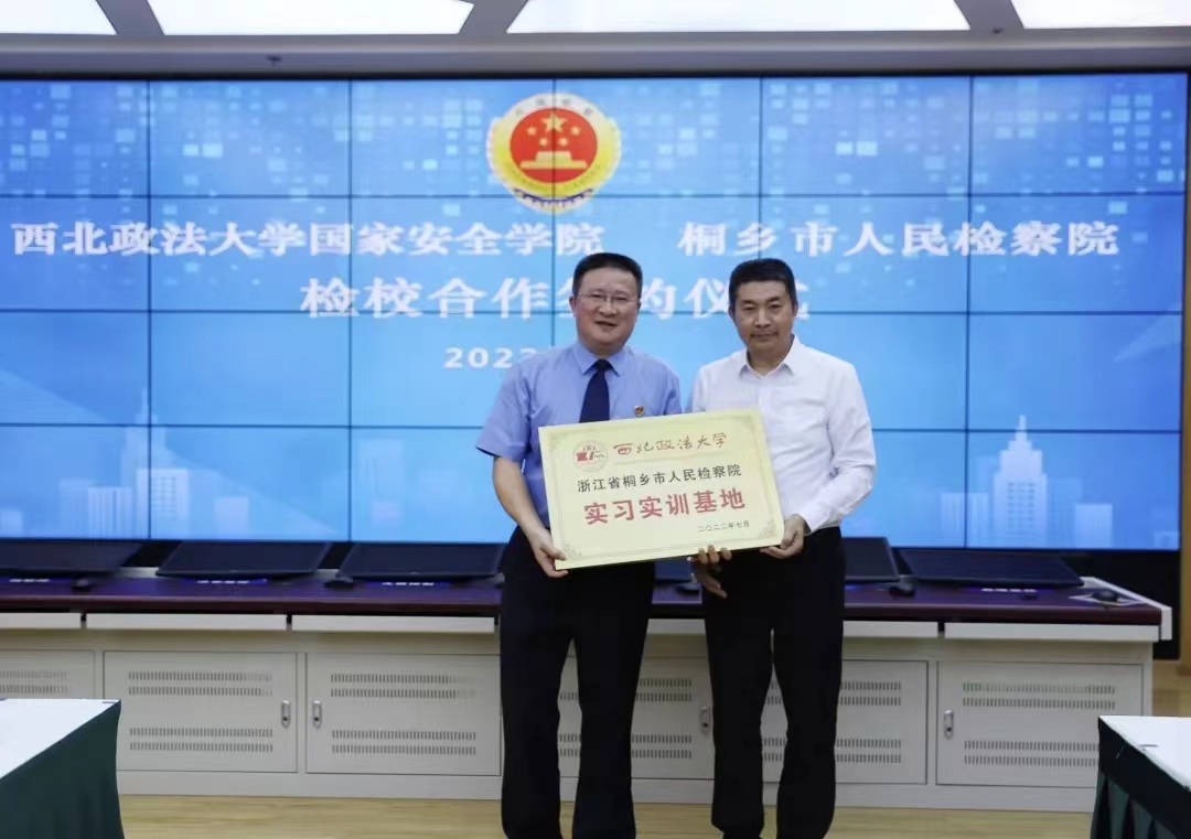 双方签署了检校合作协议,建立西北政法大学浙江省桐乡市人民检察院实习实训基地。