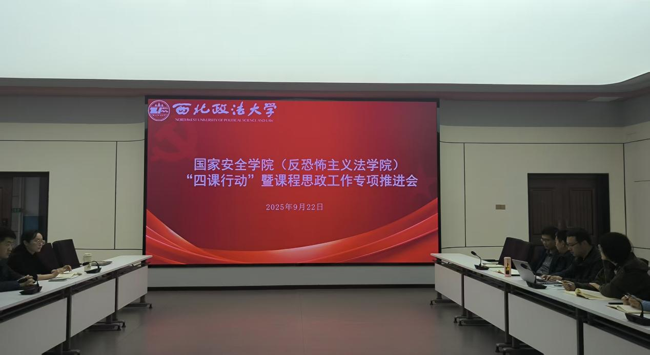 为进一步强化“三风”,提高“三率”,88足球直播网官网 于9月22日在西北政法大学可视化中心开展“四课行动”暨课程思政工作专项推进会。学院党委书记李政敏、党委副书记、副院长刘卫波、院长助理段阳伟、反恐法教研室主任马瑜、教务秘书秦哲、本科各年级辅导员王真、张婕妮及部分新进教师参加本次会议。会议由院长助理段阳伟主持。