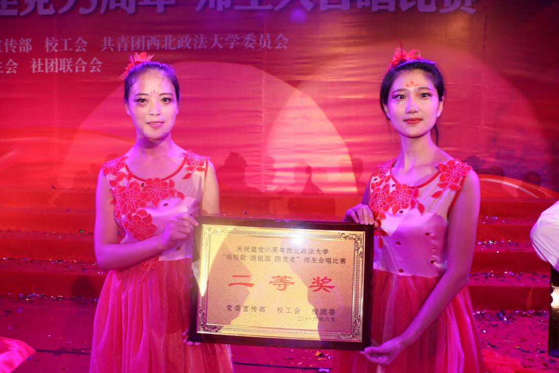 2016年6月8日19点,为庆祝建党95周年,西北政法大学“唱校歌 颂祖国 跟党走”师生合唱大赛在天平楼广场隆重举行。本次合唱比赛由党委宣传部、校工会、共青团西北政法大学委员会主办。我校党委书记宋觉、校长贾宇、党委副书记赵健、纪委书记罗新远、副校长宣力、总会计师刘鹏伟、副校长李玉朝及各学院领导老师莅临比赛现场。大赛特别邀请了中国合唱协会群众合唱委员会副主席、陕西省合唱协会会长、国家一级指挥刘希秋等担任评委。包括各学院师生以及由机关党委和有关部门教师组成的共20支代表队近1500余名师生参加本次比赛。