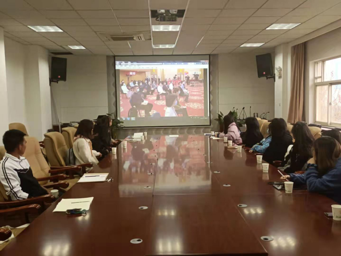 参会同学共同观看了2021年“两会”热点聚焦视频。通过学习深刻认识到中国正处在“两个一百年”的重要历史交汇期、我国国民经济建设与社会发展进入新的关键时期、社会主义深入发展将面临更大的挑战,我们作为新时期的大学生,此刻正站在新的历史起点上,应该时刻牢记自己的职责与使命,在日常的学习生活中严格要求自己,发愤图强、努力学习,将来以饱满的精神进入社会,为社会主义建设贡献自己的力量。