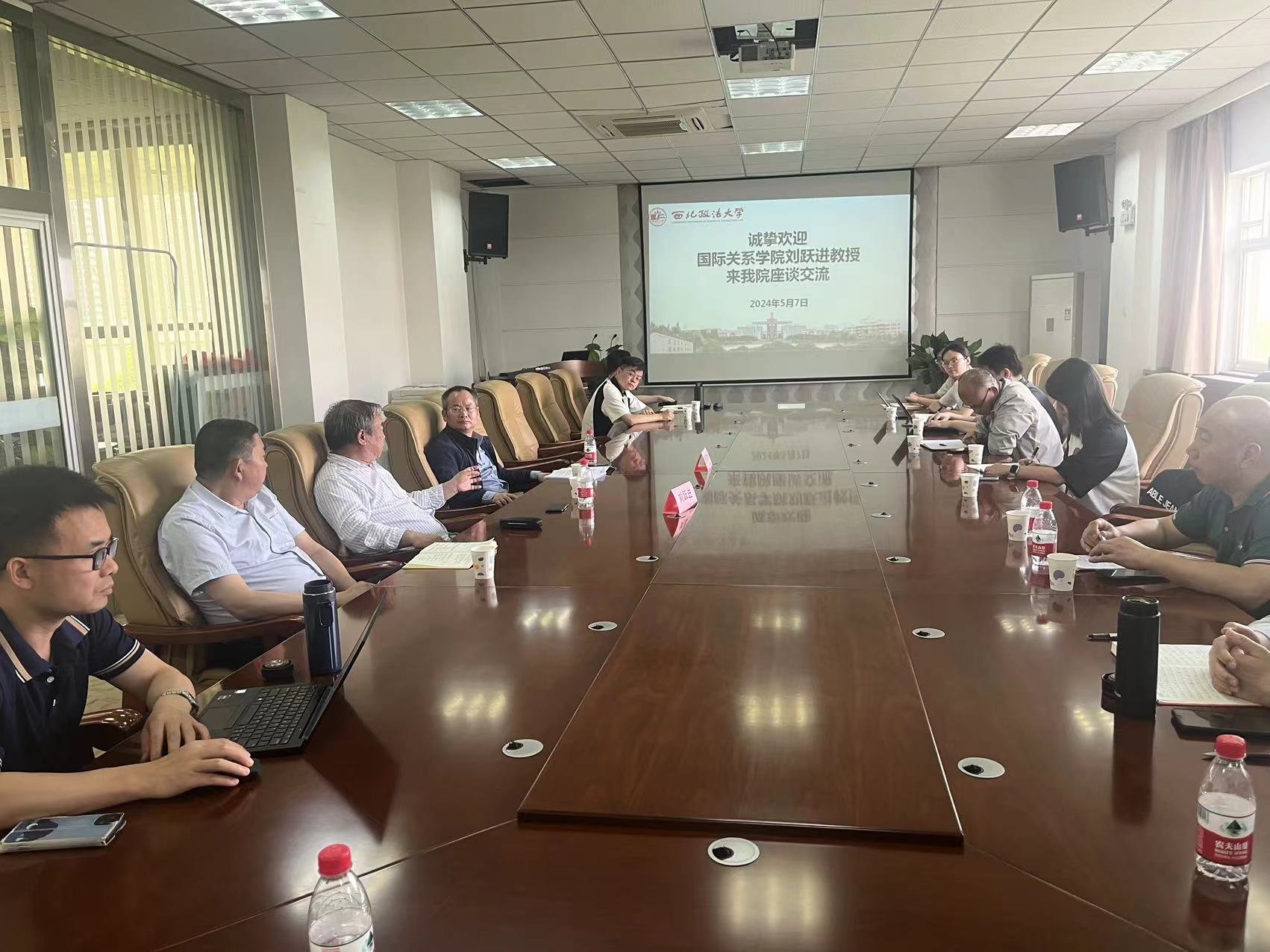 5月7日,国际关系学院公共管理系教授、国家安全学创始人刘跃进教授,应邀为88足球直播 做了“国家安全体系与国家安全场建设”专题讲座,并就国家安全学学科建设与88足球直播网官网 教师进行讨论交流。讲座由院长舒洪水主持。