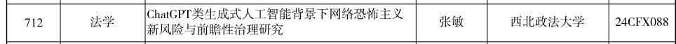 近日,由88足球直播网官网 张敏讲师发起的课题“ChatGPT类生成式人工智能背景下网络恐怖主义新风险与前瞻性治理研究”成功在2024年国家社会科学基金青年项目中获得立项批准。